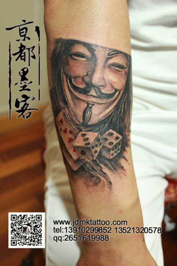 京都墨客纹身作品 男士小臂V字仇杀队纹身