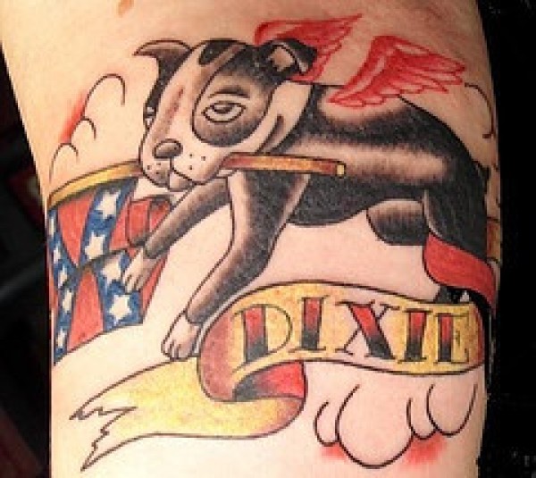 法国斗牛犬与联邦国旗纹身图案