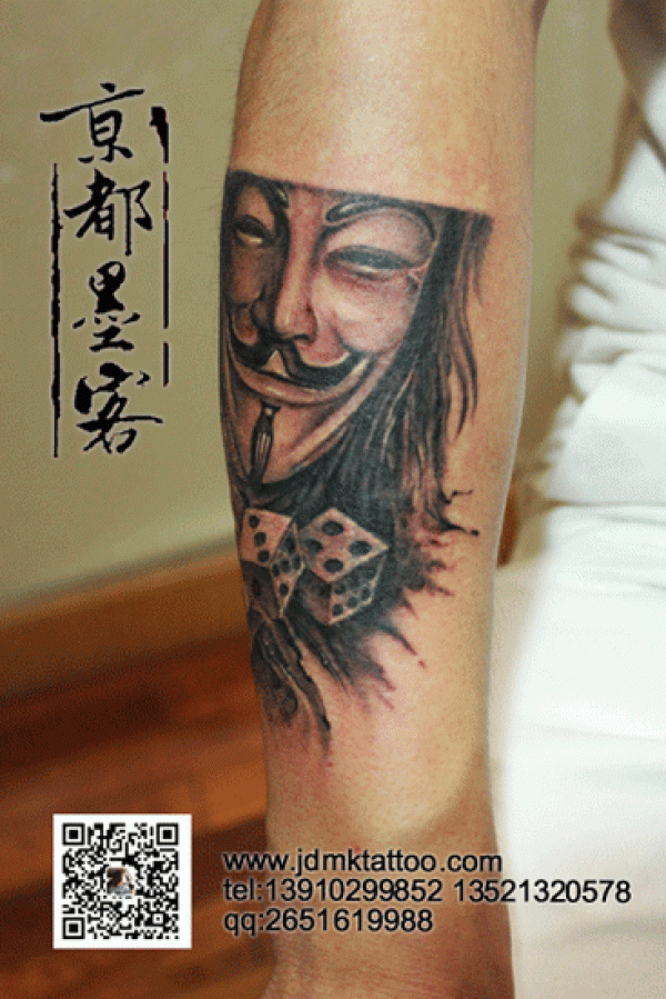 京都墨客纹身作品 男士小臂V字仇杀队纹身