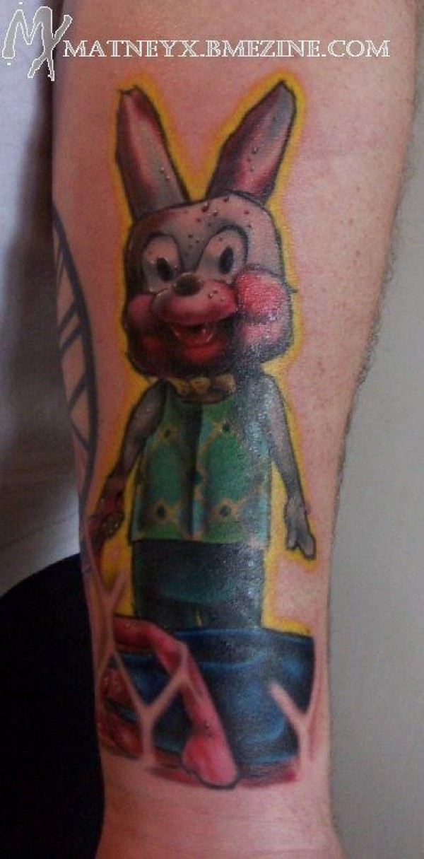 小臂卡通彩色兔子纹身图案