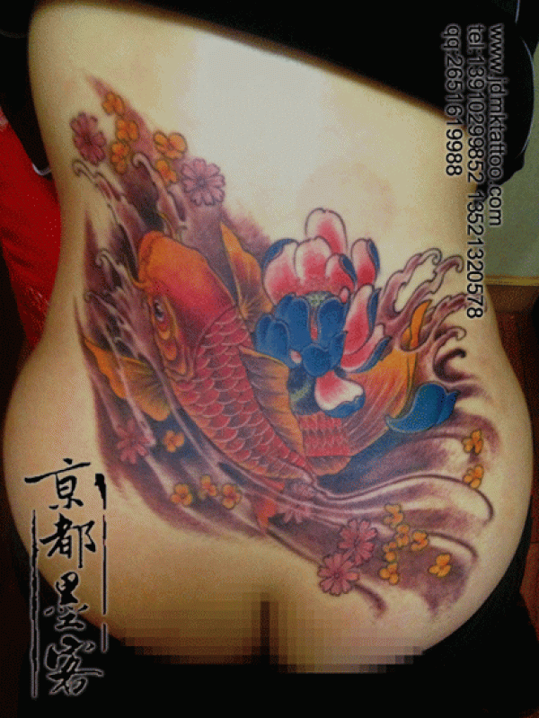 女性腰部莲花花纹刺青_腰部纹身图案大全_纹身图吧