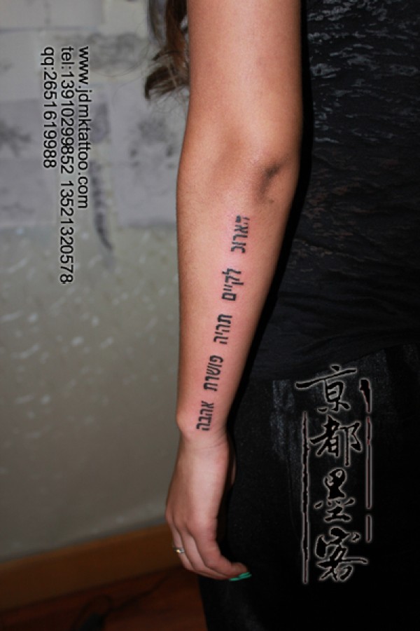 京都墨客纹身作品 女士小臂阿拉伯文字黑白纹身