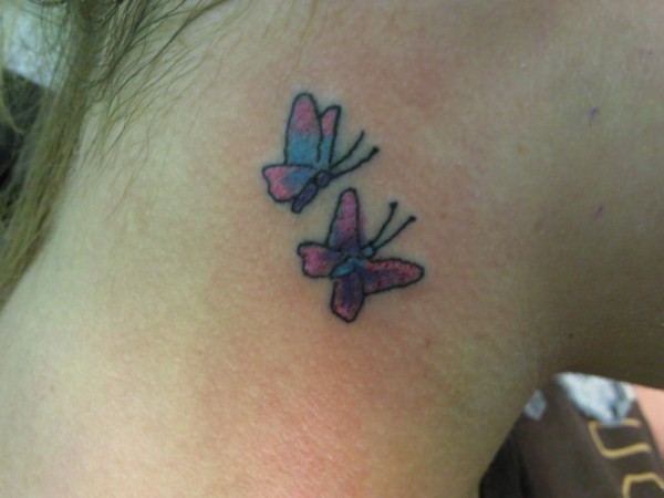 脖子两只小蝴蝶纹身图案
