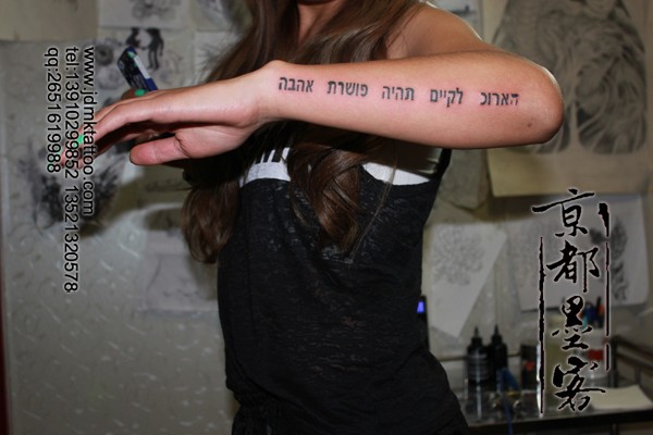 京都墨客纹身作品 女士小臂阿拉伯文字黑白纹身