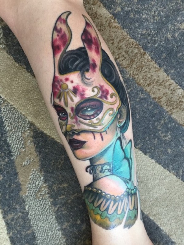 墨西哥风格神秘蒙面女郎与蝴蝶纹身图案