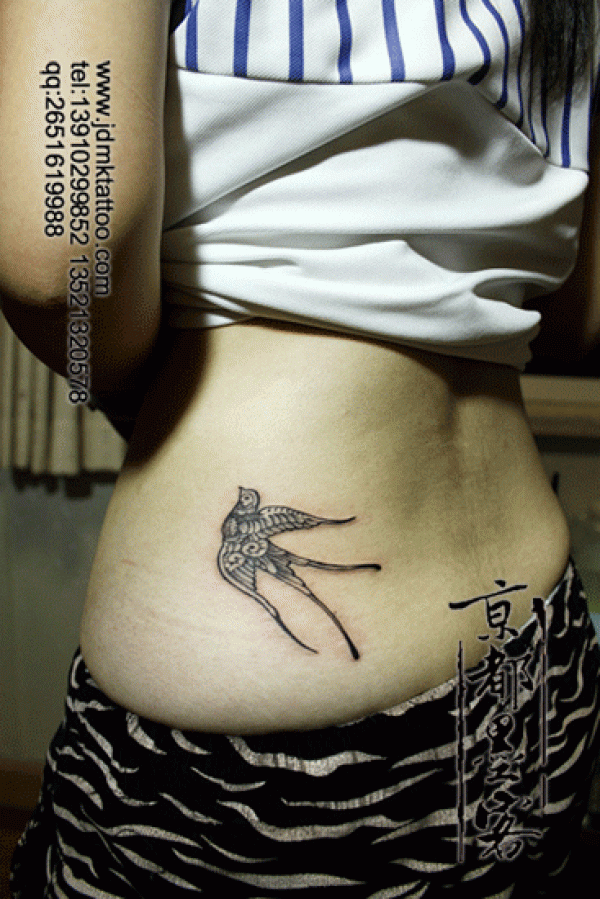 分享一款腰部时尚性感的蝶恋花纹身图案_腰部纹身图案大全_纹身图吧
