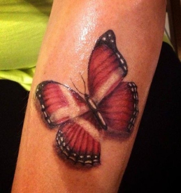 红色写实的蝴蝶纹身图案