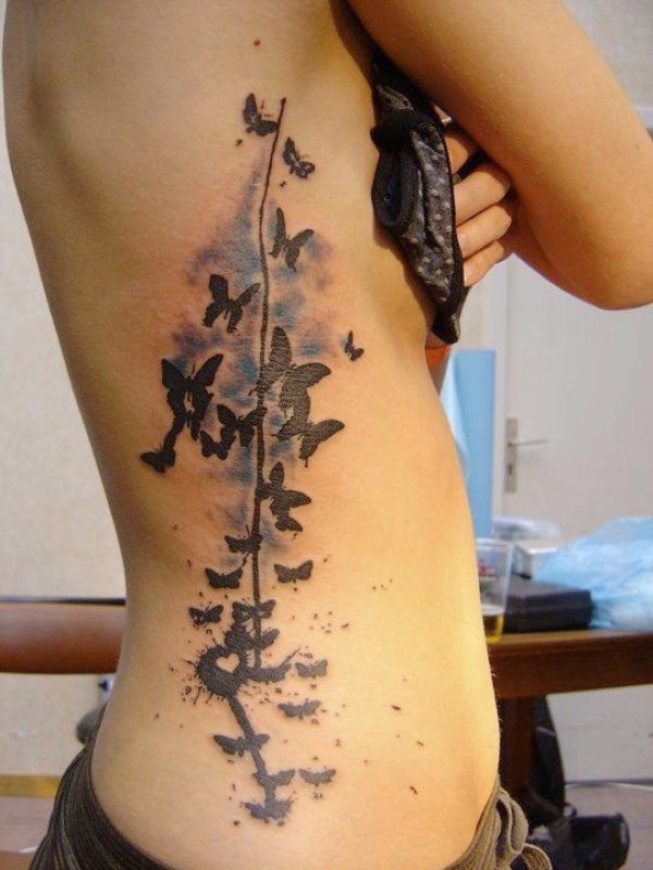 水彩画侧肋好多漂亮的蝴蝶纹身图案