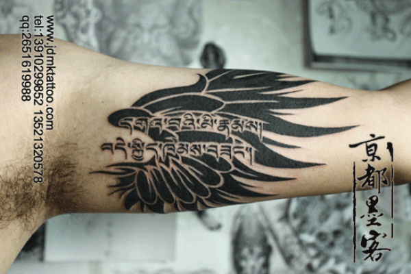京都墨客纹身作品 大臂内测图腾黑白纹身