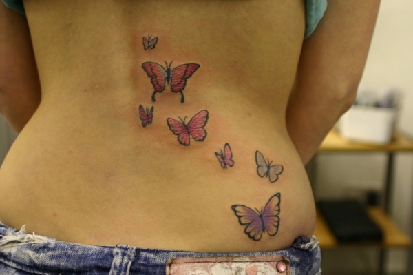 女生背部可爱的蝴蝶纹身图案