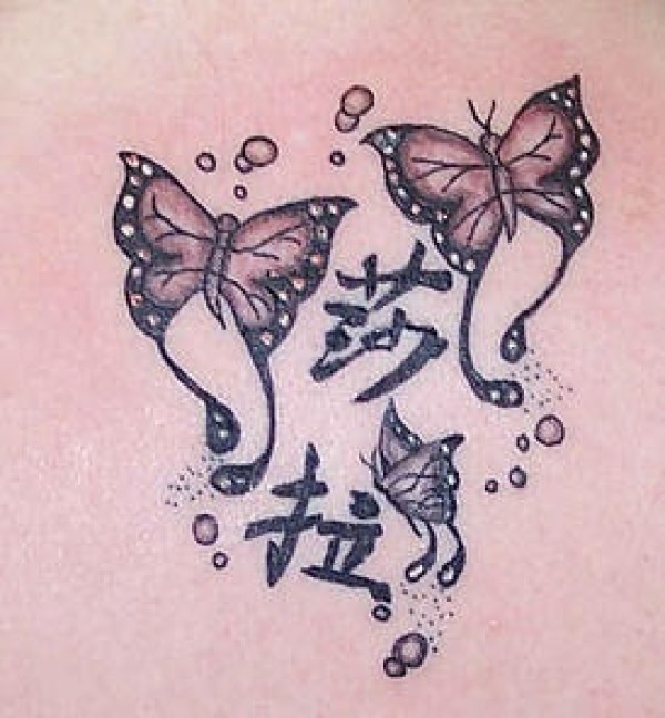 汉字与蝴蝶纹身图案