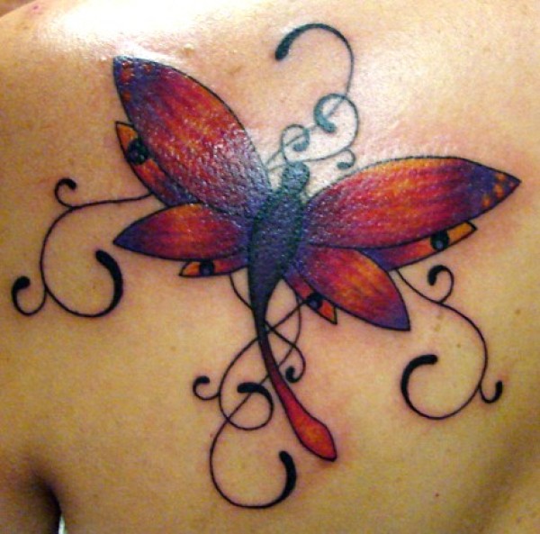 红色幻想蝴蝶藤蔓纹身图案