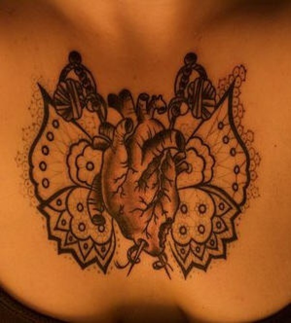 心脏和蝴蝶翅膀纹身图案
