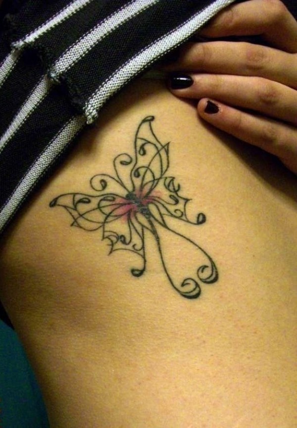 侧肋简约的蝴蝶线条纹身图案