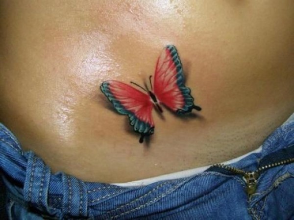 写实的红色翅膀蝴蝶纹身图案