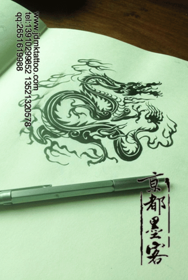 龙纹身手稿_一组老传统黑灰龙手稿纹身图案