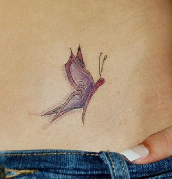 腹部飞行的紫蝴蝶纹身图案