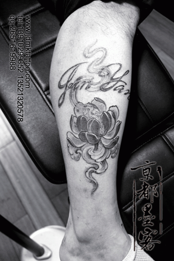 传统鲤鱼花小腿纹身_腿部纹身图案大全_纹身图吧