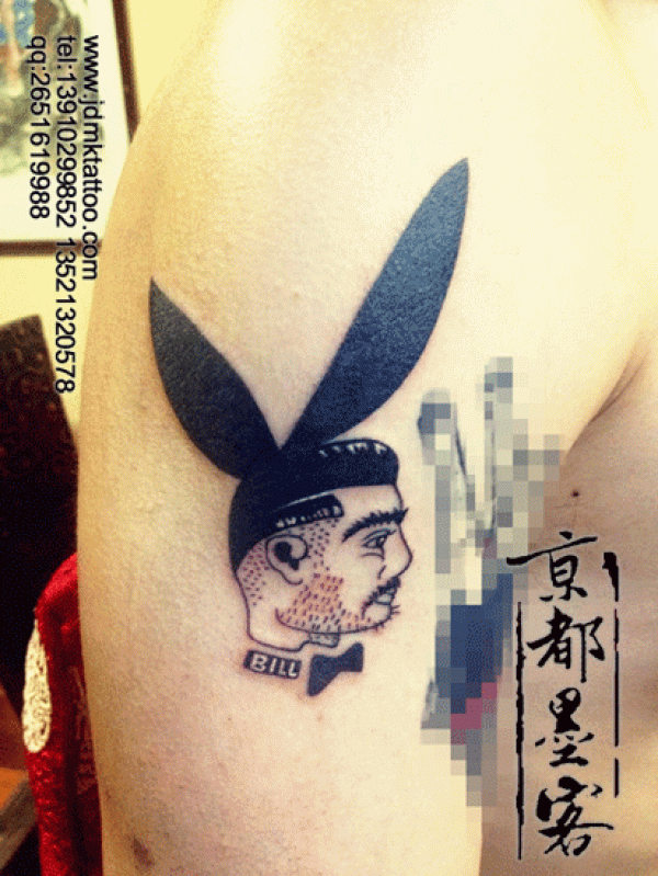 京都墨客纹身作品 胳膊兔爷黑白纹身