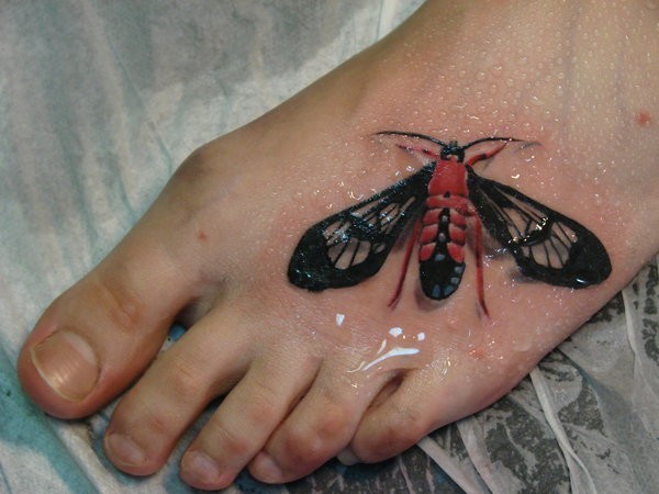脚背立体逼真的蝴蝶纹身图案