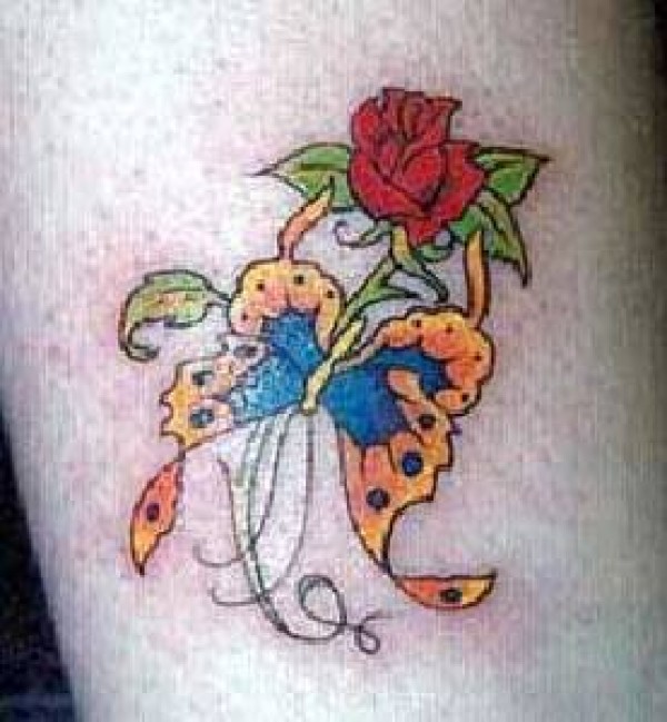 红玫瑰与黄蝴蝶纹身图案