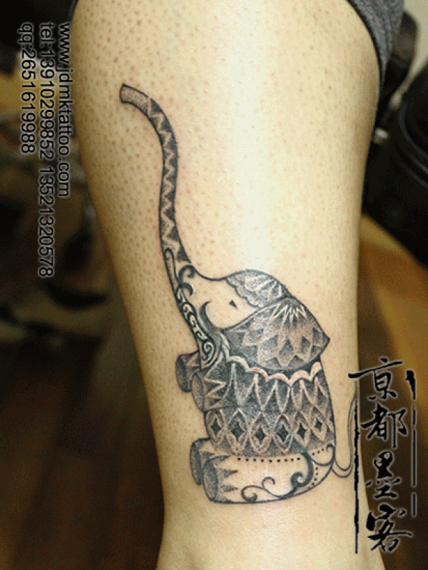 京都墨客纹身作品 脚踝小象遮盖图腾纹身