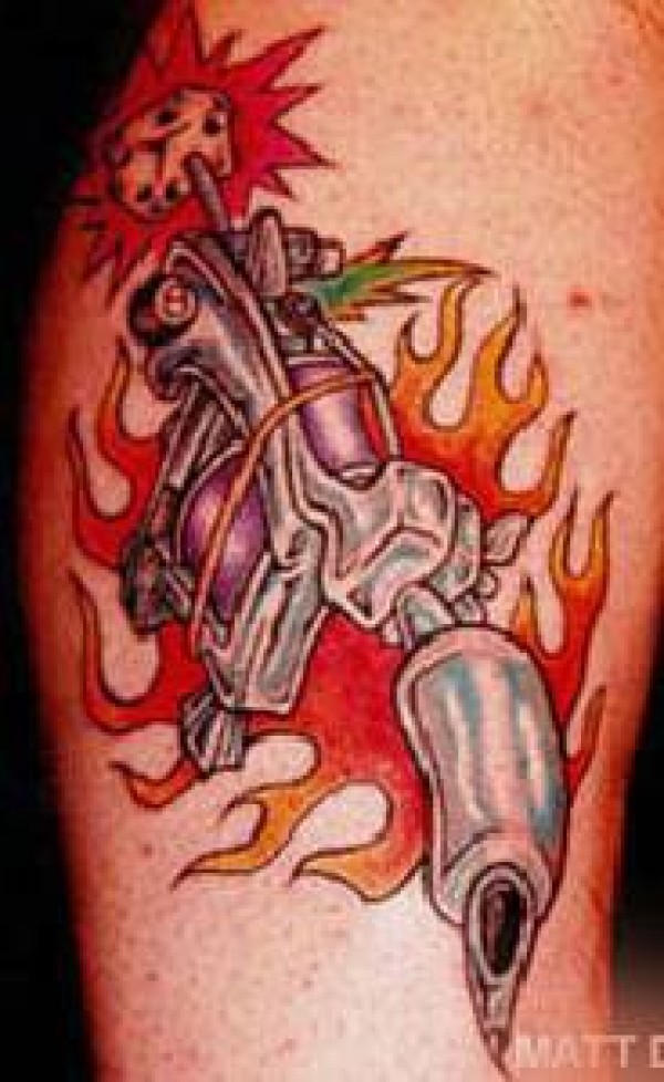火焰和汽车零件纹身图案