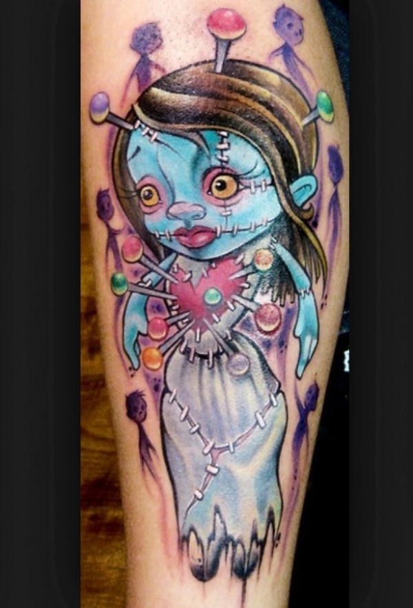 彩色卡通娃娃与针纹身图案