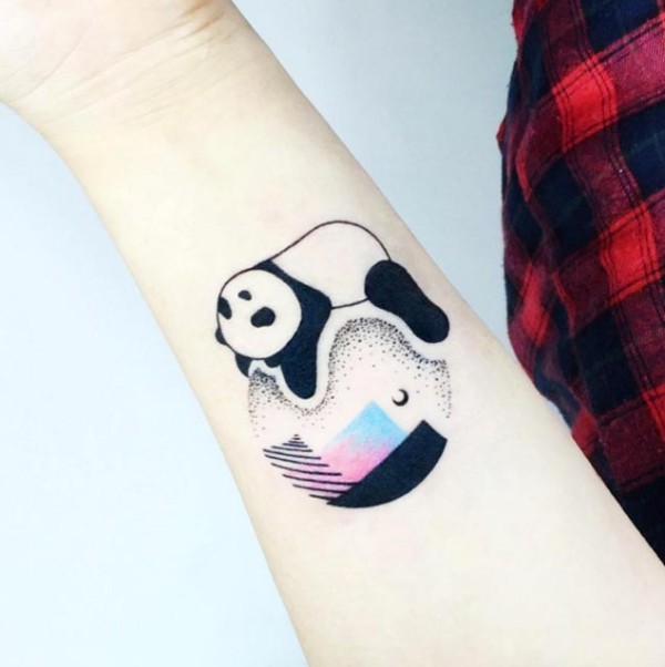 手腕可爱小清新卡通熊猫和星球纹身图案