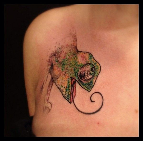 胸部卡通变色龙蜥蜴彩色纹身图案