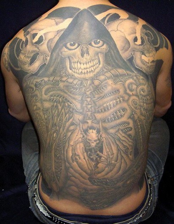 整背骷髅死神纹身图片
