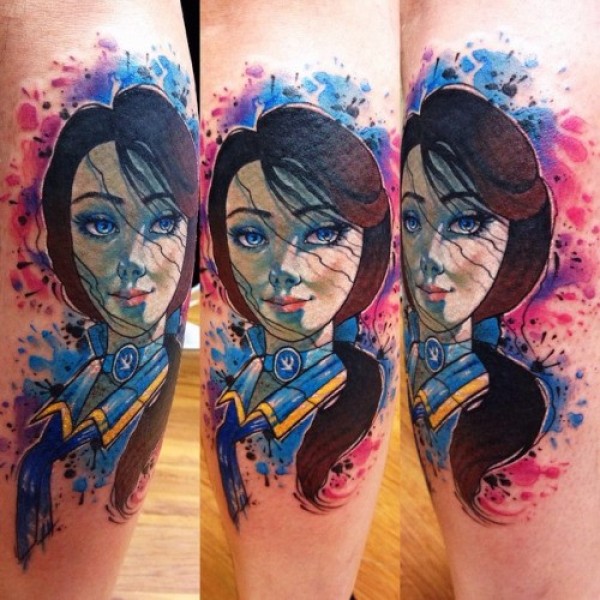 腿部可爱的卡通女人纹身图案