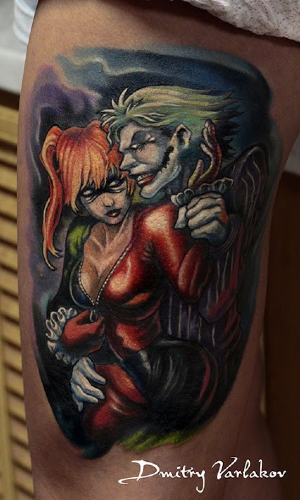 大腿彩色卡通性感女人性感和小丑纹身图案