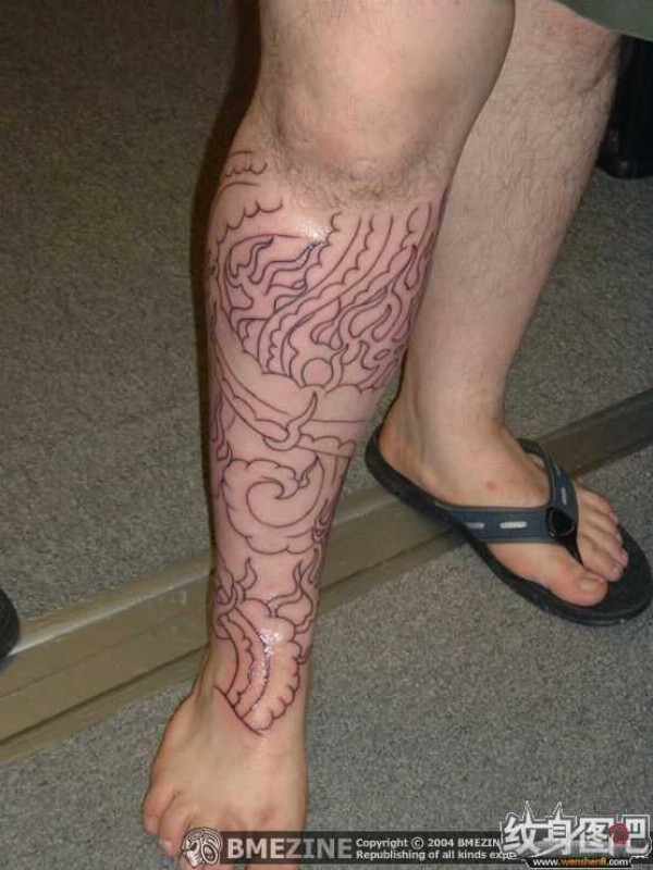 花腿纹身--一组大黑腿纹身图案作品欣赏