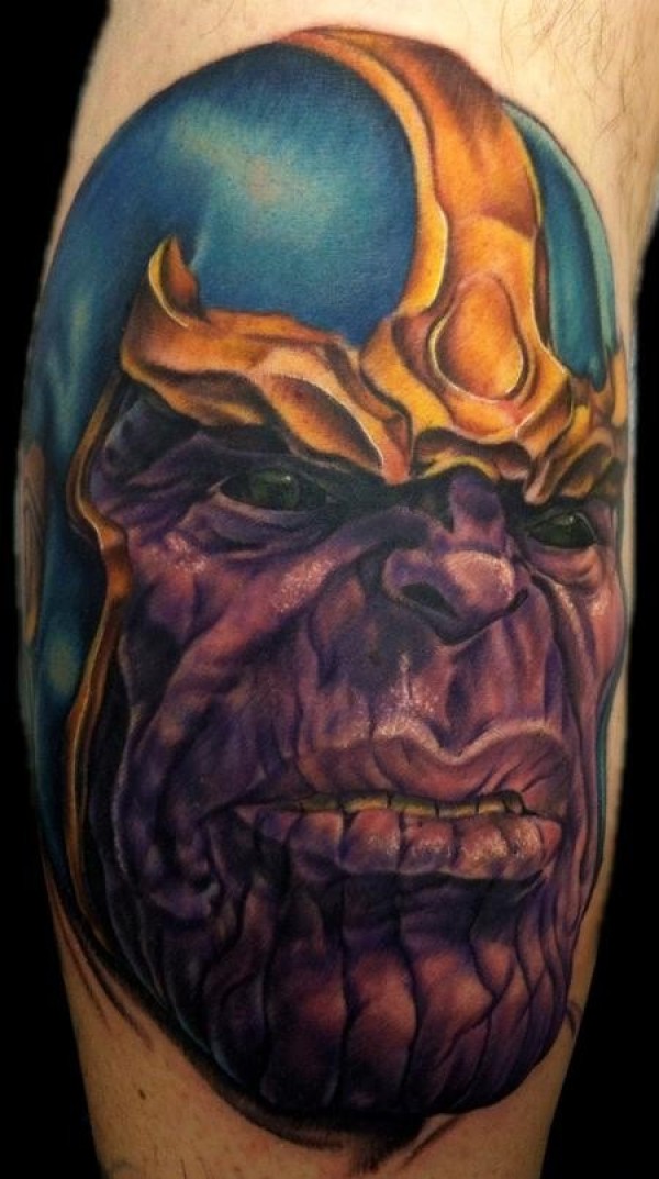 彩色奇迹宇宙恶棍小腿卡通纹身图案