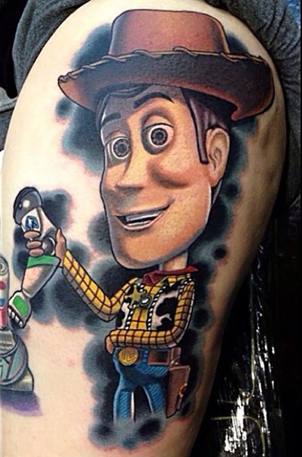 大腿彩色玩具总动员牛仔卡通纹身图案
