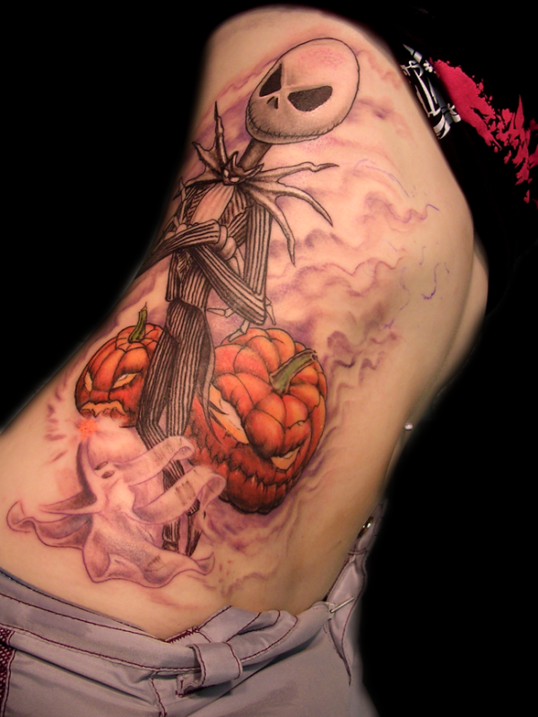 骷髅杰克和万圣节南瓜和幽灵纹身图案