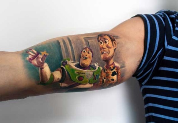 大臂彩色卡通玩具英雄纹身图案