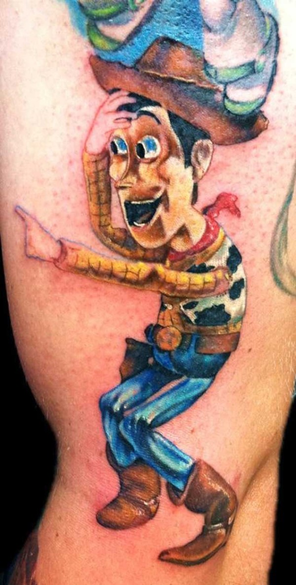 水彩风格彩绘牛仔英雄卡通纹身图案