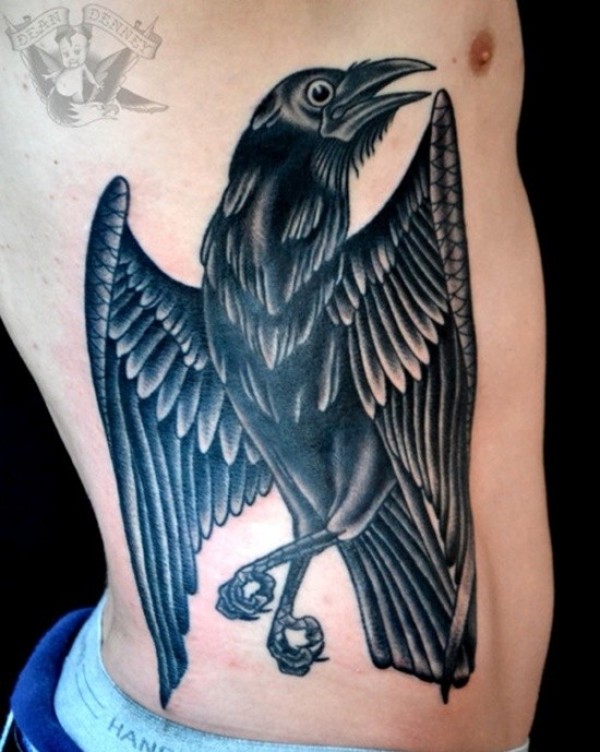 侧肋彩色卡通乌鸦纹身图案