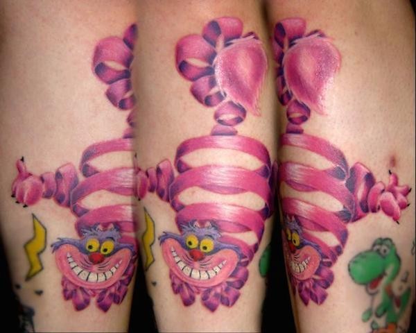 搞笑的粉红咧嘴猫卡通纹身图案