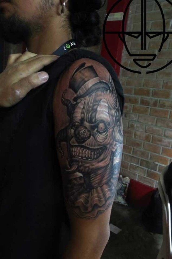 大臂邪恶怪物的小丑纹身图案