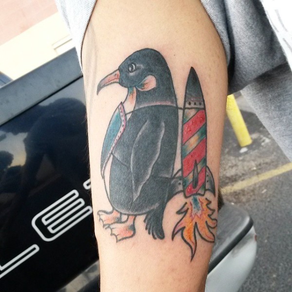 old school彩绘火箭和企鹅卡通纹身图案