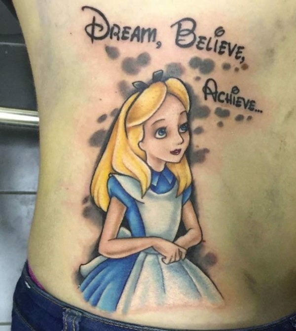 漂亮的彩色卡通爱丽丝与字母纹身图案