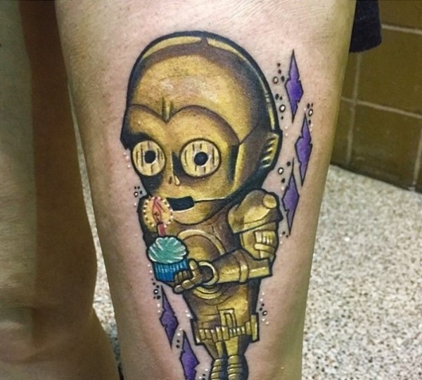 大腿有趣的卡通金色士兵和纸杯蛋糕纹身图案