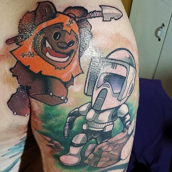 肩部卡通伊渥克和风暴骑兵纹身图案