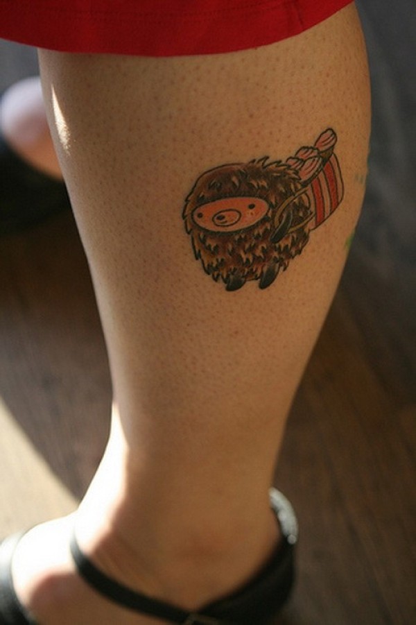 小腿可爱卡通刺猬和蛋糕纹身图案