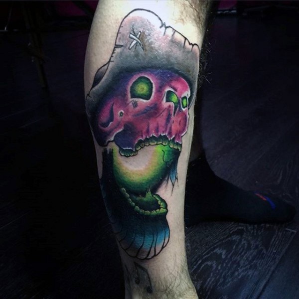 彩色神秘水手骷髅和帽子纹身图案
