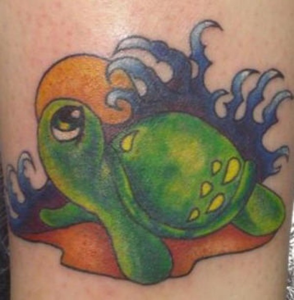 卡通乌龟和太阳纹身图案