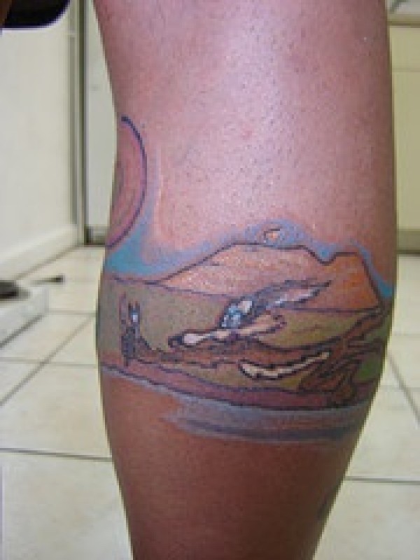 小腿奔跑的卡通动物纹身图案